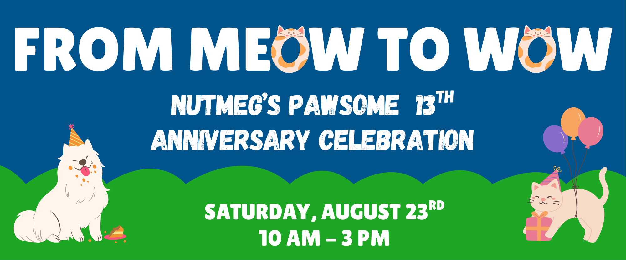 Nutmeg Spay/Neuter Clinic has proudly provided over 60,000 spay and neuter surgeries to pets in our community. We’ve helped thousands of families access affordable veterinary care, and we couldn’t have done it without you. Now it’s time to celebrate — and you’re invited!